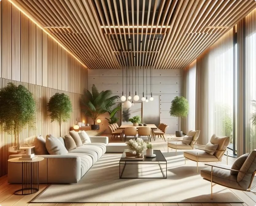 Add warmth and sophistication to your space with our wooden false ceilings. Perfect for creating a cozy and inviting atmosphere, wooden ceilings bring natural elegance to both traditional and contemporary interiors. Available in a variety of finishes, our wooden ceilings are crafted with precision and care, ensuring a stunning look that complements your decor.